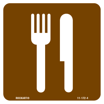 11-172-4 4 x 4 Decal - "Restaurant/Food Service (2009 Symbol)", Wht/Brn, EG