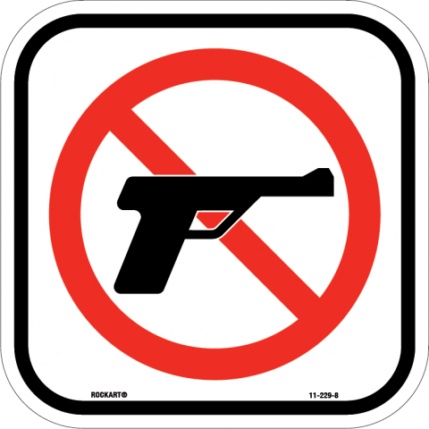 11-229-SizeAlum. Sign - "No Guns/Firearms (2009 Symbol)", Wht/Blk/RedEquivalent 3rd-Party Identifiers:PS-001