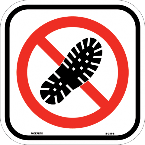 11-234-6 6 x 6 x .063 Alum. Sign - "No Stay on Trail/No Step (2009 Symbol)", Wht/Blk/Red, EG