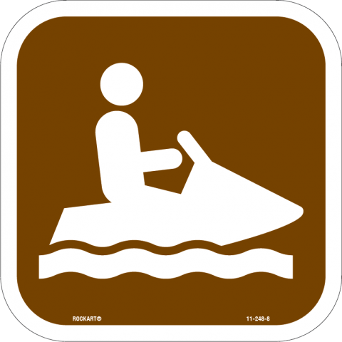11-248-12 12 x 12 x .080 Alum. Sign - "Jet Ski/Personal Watercraft (2009 Symbol)", Wht/Brn, EG