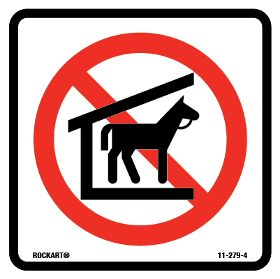 11-279-4 4 x 4 Decal - "No Horse Stable (2009 Symbol)", Wht/Blk/Red, EG