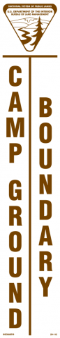 20-1123" x 16" Strip Decal: Campground boundary. BLM logo. White/brown. Non-reflective.