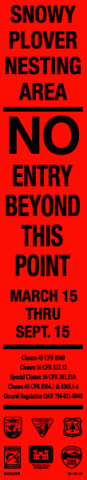 20-142 3 X 16 Strip Decal - "Snowy Plover Nesting Area...", Red/Blk, Non-Reflective