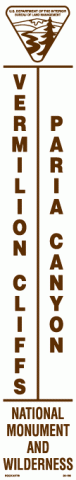 20-1863 x 18 Strip decal: Bureau of Land Management logo. Vermillion Cliffs Paria Canyon National Monument and Wilderness. White/brown. Reflective.