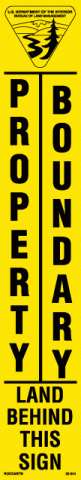 20-2442-3/8" x 14" Strip Decal: property boundary land behind this sign. With the Bureau of Land Management logo. Yellow/black. Non-reflective.