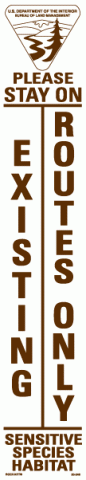 3 X 16 Strip Decal - "Please Stay On Existing Routes Only - Sensitive Species Habitat", BLM Logo, Wht/Brn, Reflective