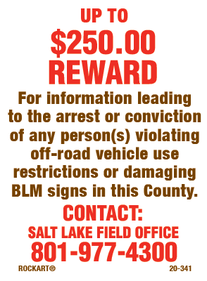 20-341 3 x 4 Decal - "$250.00 Reward-Leading To Arrest", Wht/Brn/Red, EG