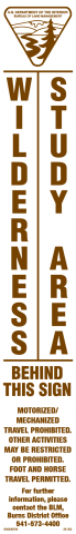 20-3523 X 20 Strip Decal - "Wilderness Study Area Behind This Sign", BLM Logo, Wht/Brn Reflective