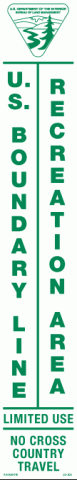 3 X 18 Strip Decal - "US Boundary Line - Recreation Area - Limited Use", BLM Logo, Wht/Grn, Reflective