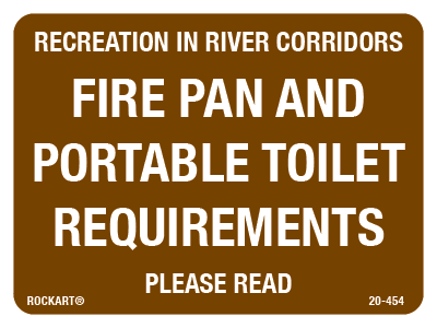 20-4544 X 3 Decal - Recreation In River Corridors - Fire Pan and Portable Toilet Requirements - Please Read, Wht/Brn, Neg, Non-Reflective