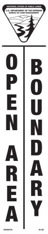 20-491 3 x 14 Strip Decal - "OPEN Area Boundary", w/ BLM Logo, Wht/Blk, EG
