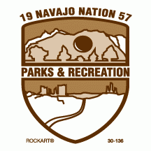30-136Navajo Nation Parks & Recreation, 1957. 3 x 3 decal. White/brown. Reflective.
