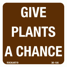 30-156Give plants a chance. 3 x 3 decal. White/brown. Reflective.