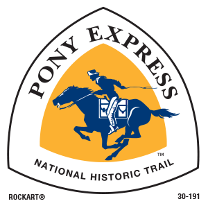 30-191 3 x 3 Decal - "Pony Express Trail, National Historic Trail", Wht/Blk/Blu/Gold, EG
