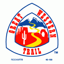 40-100Great Western Trail logo. 3 x 3 decal. White/yellow/red/blue. Reflective.