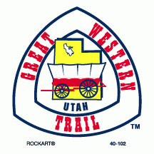40-102Great Western Trail-Utah. 3 x 3 decal. White/yellow/red/blue. Reflective.