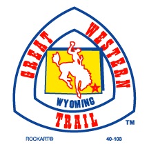 40-103Great Western Trail-Wyoming. 3 x 3 decal. White/yellow/red/blue. Reflective.