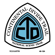 40-124Continental Divide Trail Logo. 3 x 3. White/black/blue. Non-Reflective.