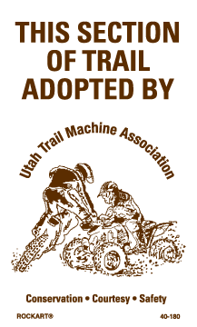 40-180This section of trail adopted by Utah Trail Machine Association. Conservation - Courtesy - Safety. 3 x 5 decal. White/brown. Reflective.
