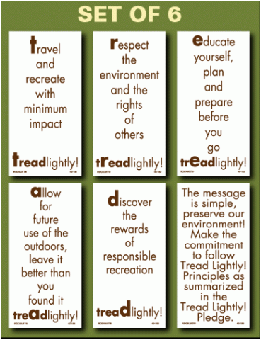 • The message is simple, preserve our environment! Make the commitment to follow Tread Lightly! Principles as summarized in the Tread Lightly! pledge.