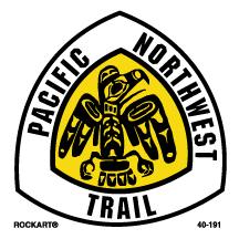 40-191Pacific Northwest Trail logo. 3 x 3. White/yellow/black. Reflective.