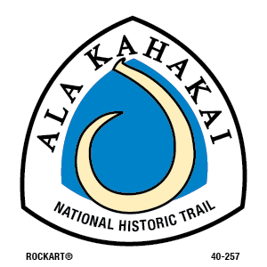 40-2573 X 3 Decal - Ala Kahakai National Historic Trail Logo, Wht/Blk/PMS_116c/PMS_3005c, Reflective