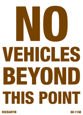 60-1158 3 x 4 Decal - "No Vehicles Beyond This Point", Wht/Brn, EG