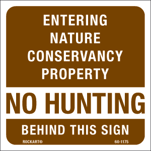 60-1175 3 x 3 Decal - "Entering Nature Conservancy Property / No Hunting Behind This Sign" Wht/Brn, EG