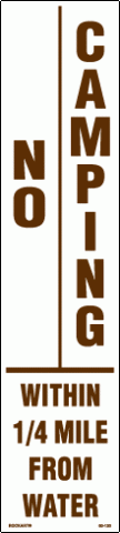 60-1203" x 13" Strip Decal: No camping within 1/4 mile from water. White/brown. Reflective.