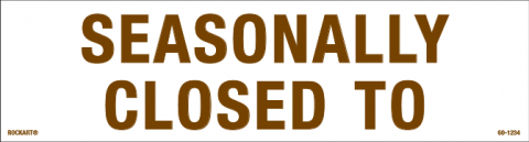 60-1234 10.25 x 2.75 Horizontal Strip Decal - "Seasonally Closed To", Wht/Brn, EG