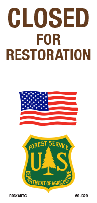 60-1320 3 x 6 Strip Decal - "Closed For Restoration", W/ US Flag & USFS Logo, Full Color, EG