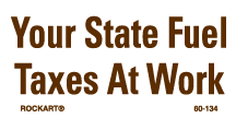 60-134Your state fuel taxes at work - 3 x 1.5 decal. White/brown. Reflective.