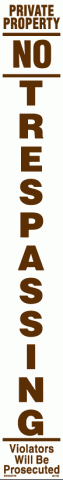 60-1533" x 22" Strip Decal: Private property. No trespassing. Violators will be prosecuted. White/brown. Reflective.