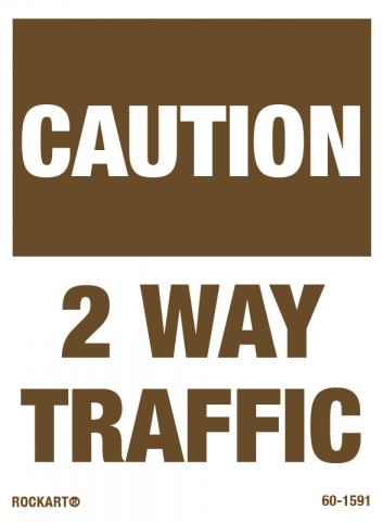 3 x 4 Decal - "Caution 2 Way Traffic", Wht/Brn, Positive, EG