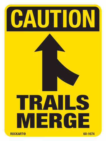 3 x 4 Decal – “Caution Trails Merge" w/ Merge Symbol, Wht/Yel/Blk, EG