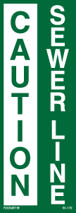 60-170 3" x 8" Strip Decal with full bleed. Caution. Sewer line. White/green. Reflective.