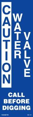 60-1713" x 10" Strip Decal with full bleed. Caution. Water valve. Call before digging. White/blue. Non-reflective.