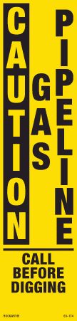 60-1743" x 12" Strip Decal. Caution. Gas pipeline. Call before digging. With blank space to write phone number to call. Yellow/black. Non-reflective.