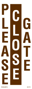 60-1753" x 8" Strip Decal: Please close gate. White/brown. Reflective.