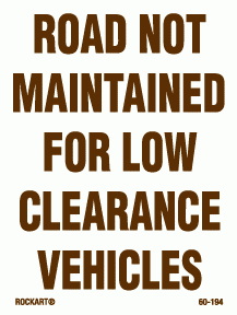 60-194Road not maintained for low clearance vehicles - 3 x 4 decal. White/brown. Reflective.