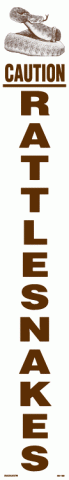 60-1993" x 20" Strip Decal: Caution. Rattlesnakes. With image of rattlesnake. White/brown. Reflective.
