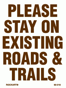 60-218Please stay on existing roads and trails - 3 x 4 decal. White/brown. Reflective.