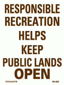 60-222Responsible recreation helps keep public lands open - 3 x 4 decal. White/brown. Reflective.