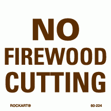 60-224No Firewood Cutting. 3 x 3 decal. White/brown. Reflective.