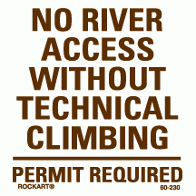 60-230No river access without technical climbing - permit required - 3 x 3 decal. White/brown. Reflective.