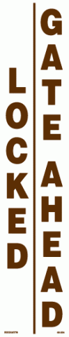 60-2343" x 14" Strip Decal: Locked Gate Ahead. White/brown. Reflective.