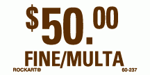 60-237$50.00 Fine / multa - English and Spanish - 3 x 1-1/2 decal. White/brown. Reflective.