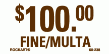 60-238$100.00 Fine / multa - English and Spanish - 3 x 1-1/2 decal. White/brown. Reflective.