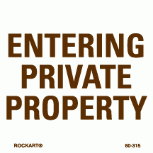 60-315Entering private property - 3 x 3 decal. White/brown. Reflective.