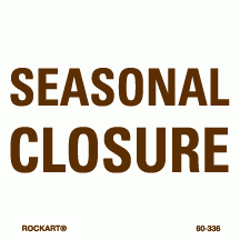 60-336Seasonal closure. 3 x 3 decal. White/brown. Reflective.